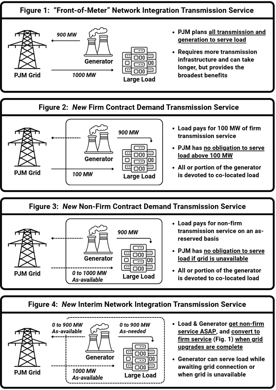 Second, FERC ordered PJM to create three new transmission services to accommodate co-location arrangements that are willing to limit energy withdrawals from the transmission system: